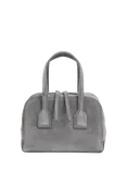 Laci Suede Mini Bowler Bag, Stone Grey