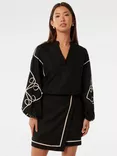 Claude Linen Blend Applique Detail Top, Black/Cream