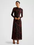 Petite Joni Long Sleeve Mesh Midi Dress, Red/Multi