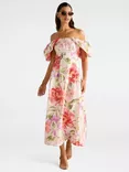 Janie Floral Off Shoulder Midi Dress, Pink