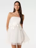 Camelia Strapless Tulle Mini Dress, Porcelain