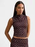 Danni Polka Dot Draped Sleeveless Top, Chocolate