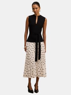 Tanya Petite Polka Dot Sleeveless Midi Dress, Mono