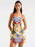 Keely Halterneck Linen Blend Mini Dress, Bright Havana