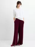 Wren Side Stripe Wide Leg Trousers, Berry Red/Porcelain