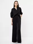 Terry Crinkle Wide Leg Trousers, Black