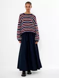 Chunky Stripe Wool Rich Jumper, Cabernet/Royal Blue