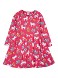 Frugi Kids' Sofia Cotton Long Sleeved Skater Dress, Rose Unicorn Floral