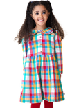 Frugi Kids' Ffion Cotton Long Sleeved Dress, Rainbow Check