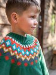 Frugi Kids' Fyfe Knitted Cotton Jumper, Holly Green Fairisle, Holly Green Fairisle