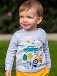 Frugi Kids' Adventure Long Sleeved T-Shirt, Grey Marl/Farm