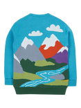Frugi Kids' Elwood Cotton Knitted Jumper, Blue/Mountain Scene