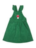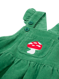 Frugi Kids' Isla Embroidered Cotton Dungaree Dress, Holly Green/Mushroom