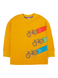 Frugi Kids' Owen Cotton Long Sleeved Top, Gold/Bikes