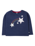 Frugi Kids' Beau Cotton Embroidered Long Sleeve Top, Navy