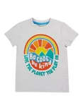 Kids' Carsen Organic Cotton Slogan T-Shirt, Grey Marl/Multi