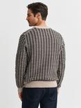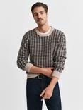Wool Blend Two-Two Check Textured Crew Neck Knit Jumper, Dark Charcoal Melange
