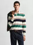 GANT Cotton Regular Fit Short Sleeve Striped Polo Shirt, Cream/Black