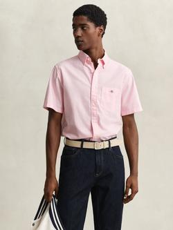 Cotton Regular Fit Short Sleeve Oxford Shirt, Washed Pink