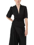 Bianca Fitted V-Neck Blouse, Black