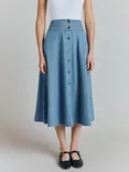Flora Denim Button Midi Skirt, Blue