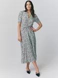 Capri Floral Puff Sleeve Satin Midi Dress, Multi
