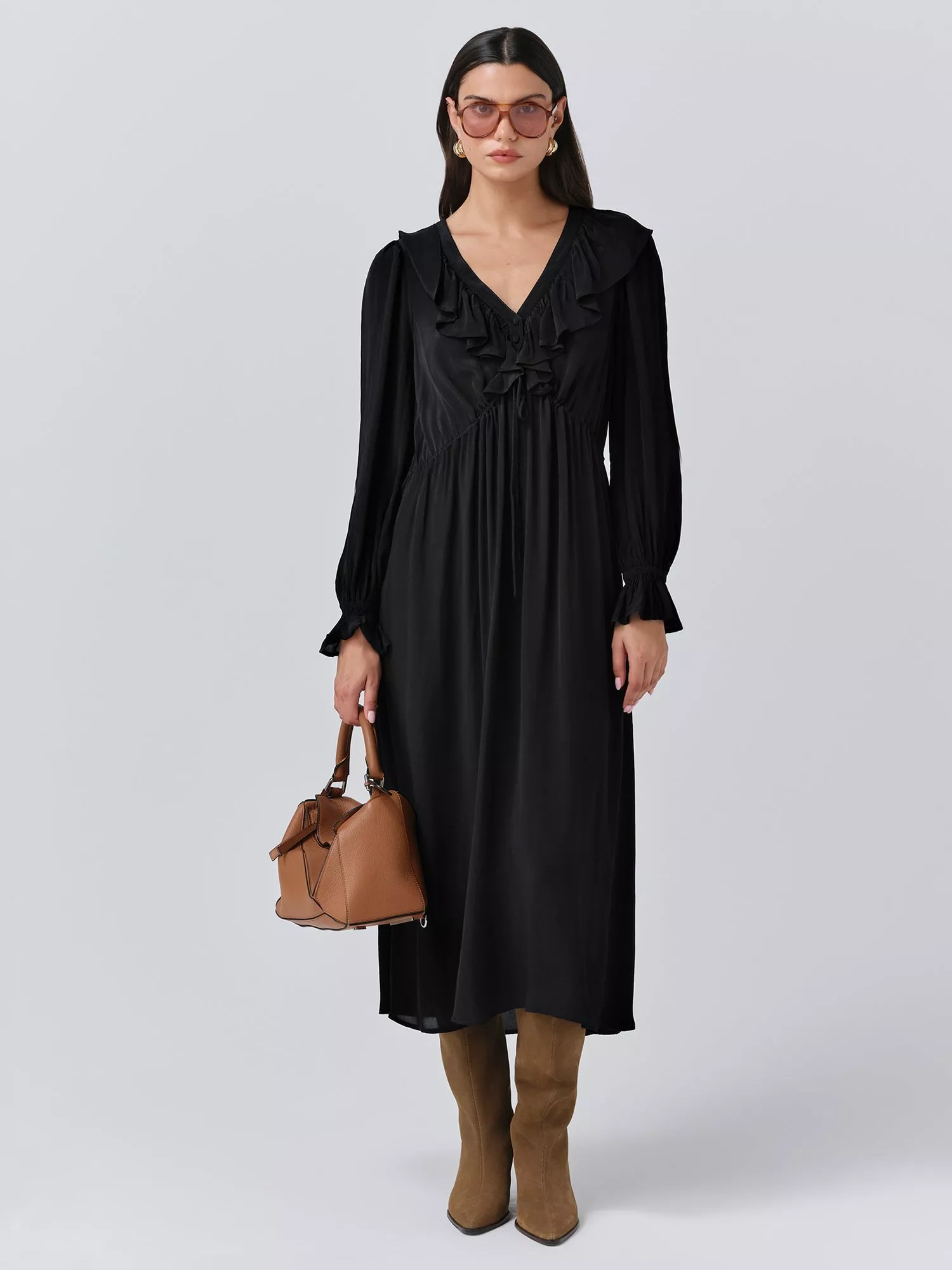 GhostAurora Frill Midi Dress£149.00Forest Green is availableBlack is availableBurnt Orange is available+ More colours availableOnline only