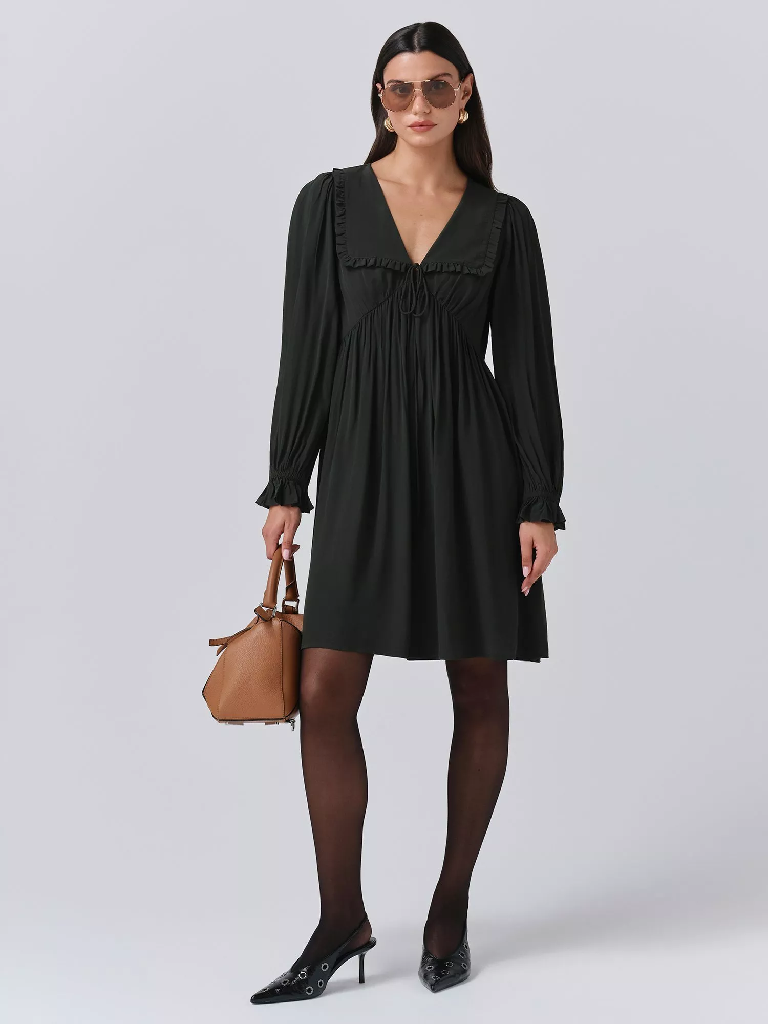 GhostBianca Ruffle Mini Dress£129.00Forest Green is availableBlack is availableRed is available+ More colours availableOnline only