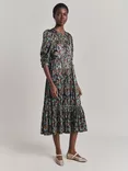 Maya Satin Abstract Print Midi Dress, Green Ikat
