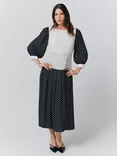 Iris Polka Dot Midi Dress, Black/White