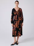 Emlyn Floral Midi Dress, Black/Rust