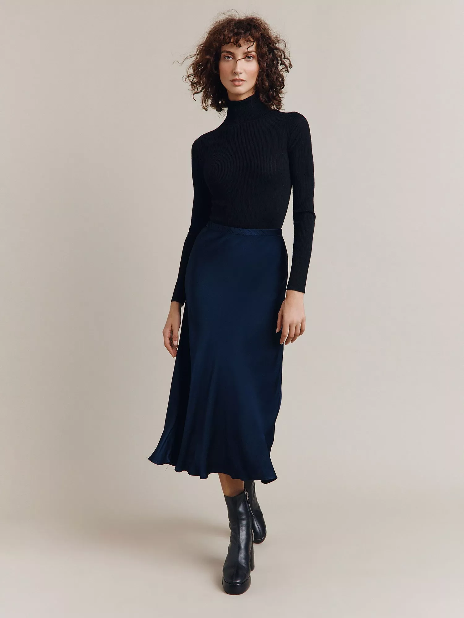 GhostLuna Satin Midi Skirt£69.00Ivory is availableBlack is availableNavy is availableStone is availableDark Green is unavailableCharcoal is unavailableKhaki Green is unavailable+ More colours availableOnline onlyAs seen on the Waitrose ad