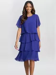 Gina Bacconi Cressida Floral Asymmetric Dress, Aqua Blue