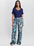 Satin Wide Leg Trousers, Blue/Multi