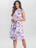 Ginnie Floral Print High Neck Double Layer Dress, Purple Infusion