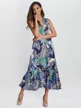 Lolita Leaf Print Sleeveless Midi Dress, Navy/Multi