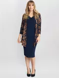 Cowl Neck Dress with Attached Jacket, Navy/Brown