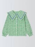 John Lewis Floral Gingham Oversized Collar Shirt, Green