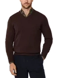 Hackett London Pure Wool V-Neck Jumper, Dark Brown