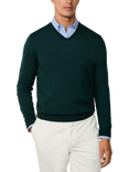 Hackett London Merino Wool Silk V-Neck Jumper, Dark Green