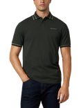 Hackett London Sport Cotton Blend Regular Fit Jacquard Detail Polo Shirt, Harvard Khaki Green, Optic White