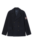 Hackett London Kids' Wool Blend Double Breasted Pea Coat, Midnight Blue, Midnight Blue