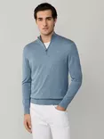 Hackett London Pure Wool High Neck Quarter Zip Jumper, Denim Blue