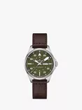 Hamilton H64635560 Men's Khaki Aviation Pilot Day Date Automatic Leather Strap Watch, Green/Brown£915.00
