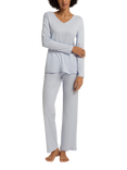 Hanro Silk Rich Trim Long Pyjama Set, Powder Blue