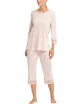 Hanro Moments Lace Trim Cropped Pyjama Set, Red Dahlia