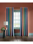 Harlequin x Sophie Robinson Sherbet Stripe Pair Lined Multiway Curtains, Lapis/Spinel/Aqua
