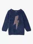 Kids' Metallic Lightning Furry Graphic Jumper, Patriot Blue