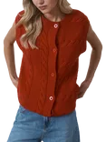 Textured Button Vest Top, Cherry Red