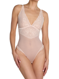 The Dahlia High Apex Lace Bodysuit, Shell Pink